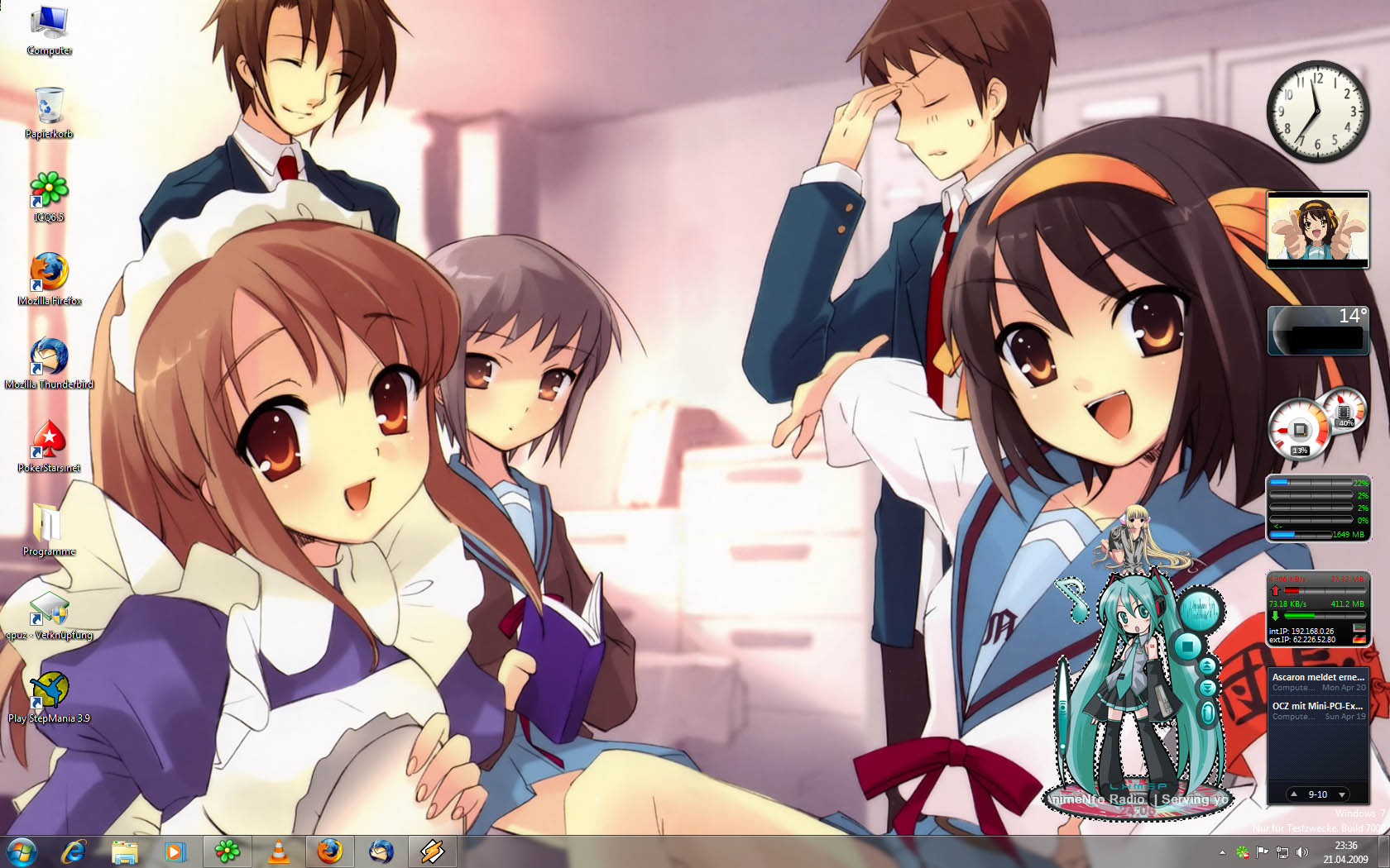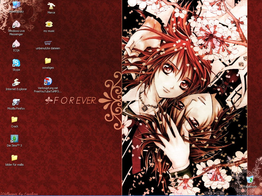Hier mal ein Bild von meinem momentanen Desktop am PC (Wallpaper wechselt alle 10 Minuten zwischen über 60 Wallies, hab mal auf ein gutes gewartet xD)